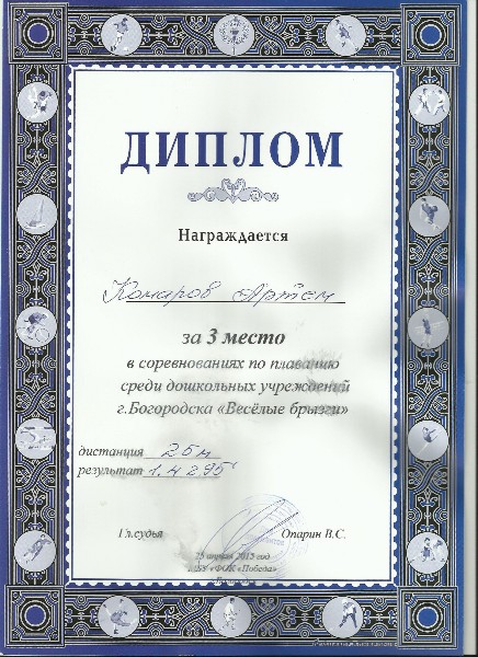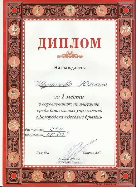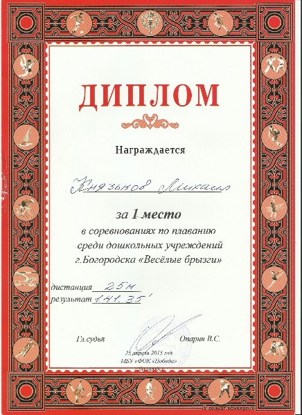 Соревнования по плаванию среди дошкольных учреждений г. Богородска "Веселые брызги", апрель 2015 года